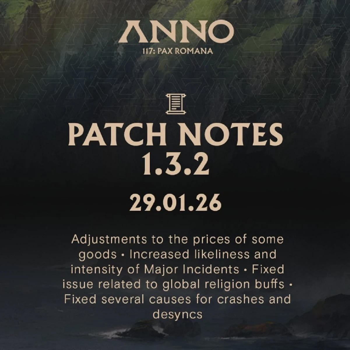 Разработчики увеличили интенсивность и частоту объявления войн со стороны агрессивных и крупных конкурентов. Главная цель авторов — создать больше проблем для тех игроков Anno 117: Pax Romana, которые этого захотят. Контролировать участившиеся городские происшествия с приходом версии 1.3.2 также стало сложнее — при пожарах нужно спасти больше людей, а в массовых беспорядках будет участвовать больше бунтовщиков.