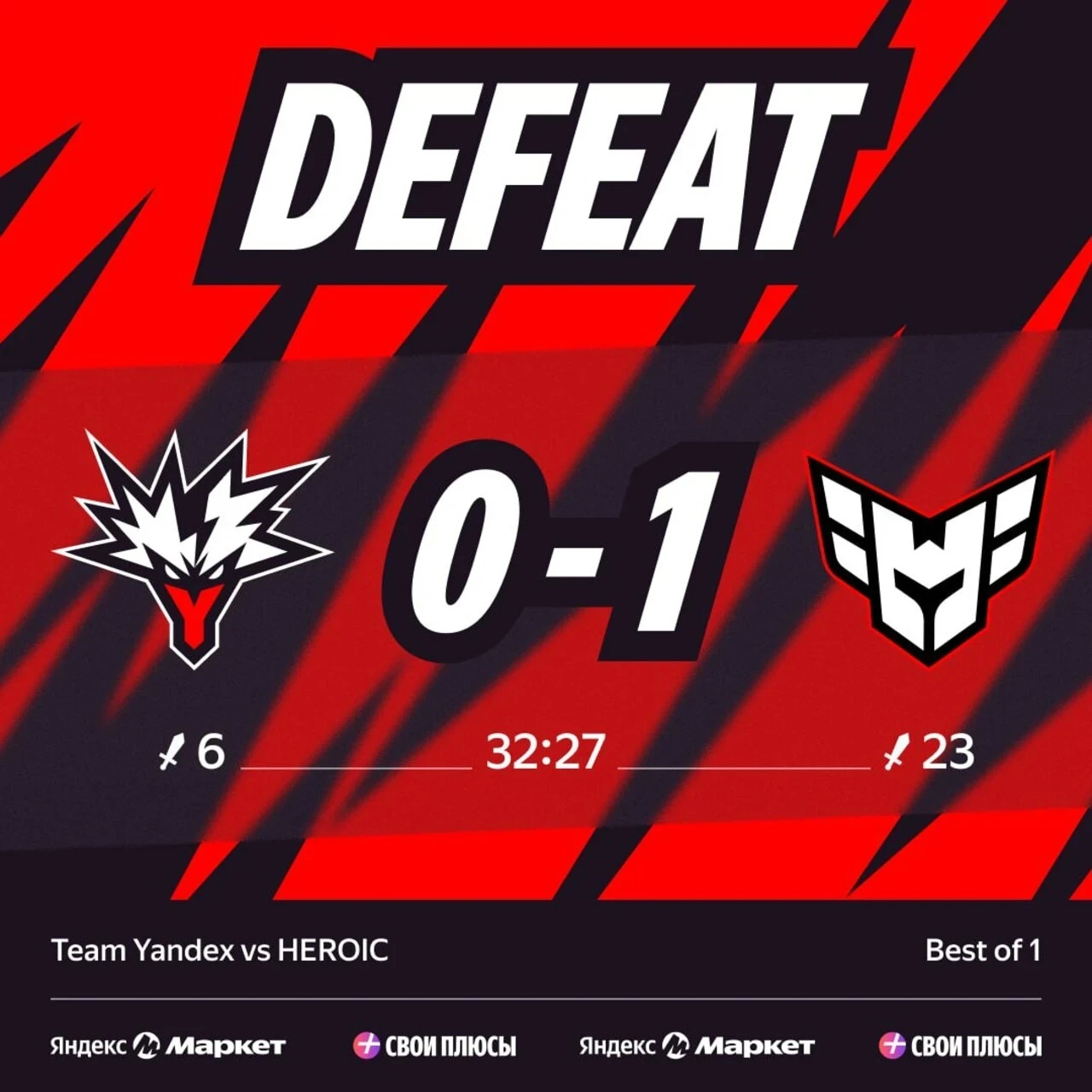 Встреча прошла при полном доминировании HEROIC и закончилась с разгромным счетом 23:6.