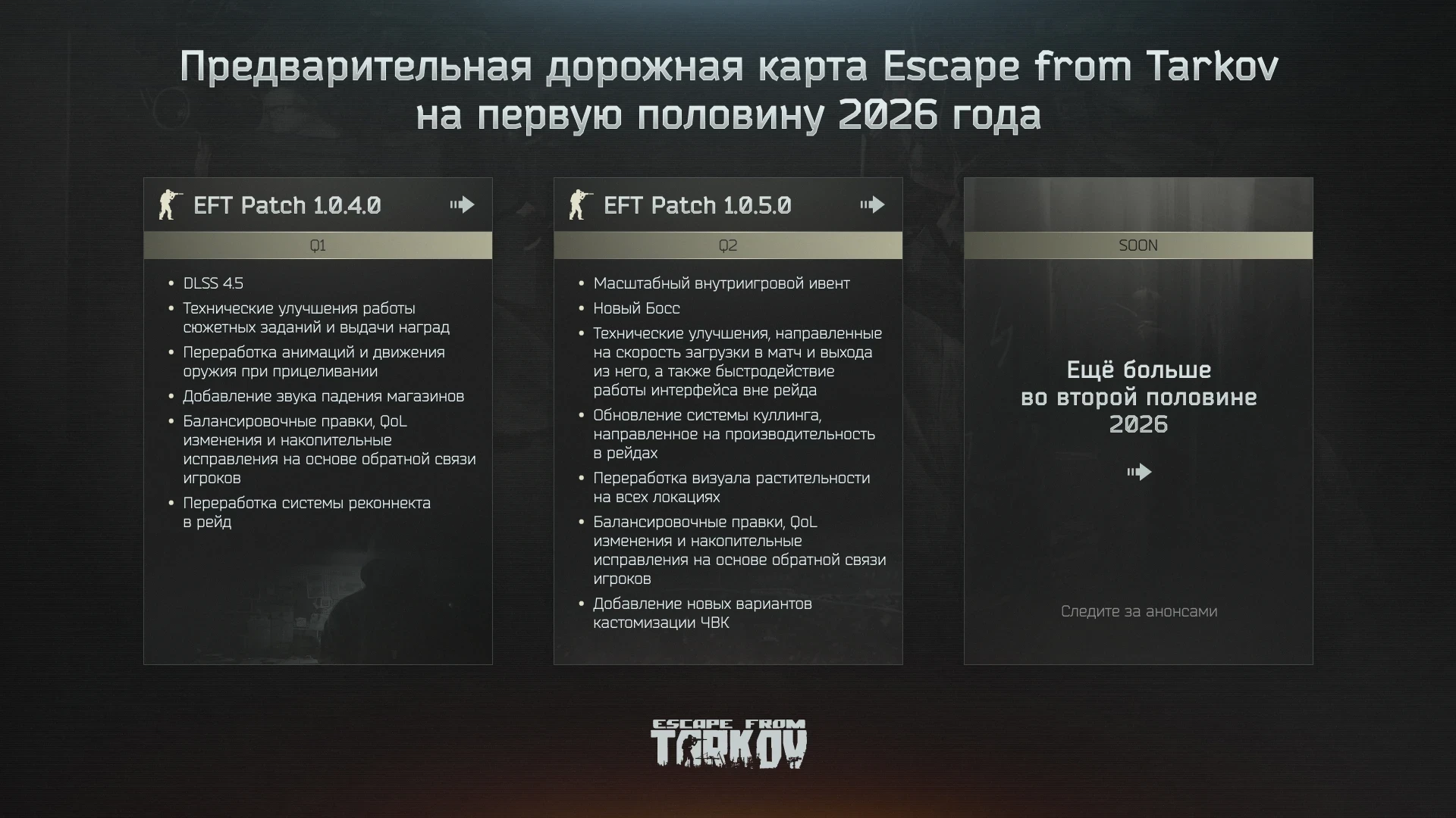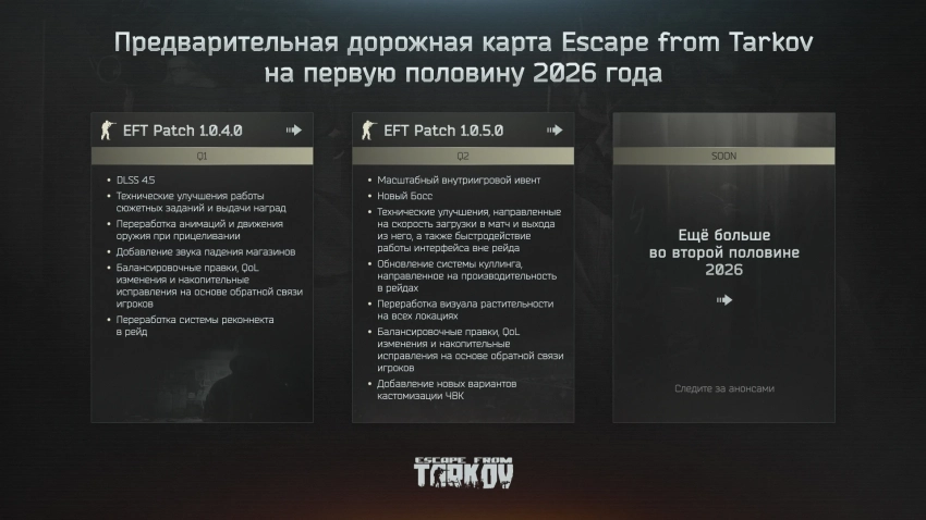 Авторы Escape from Tarkov поделились планами на первую половину 2026 года