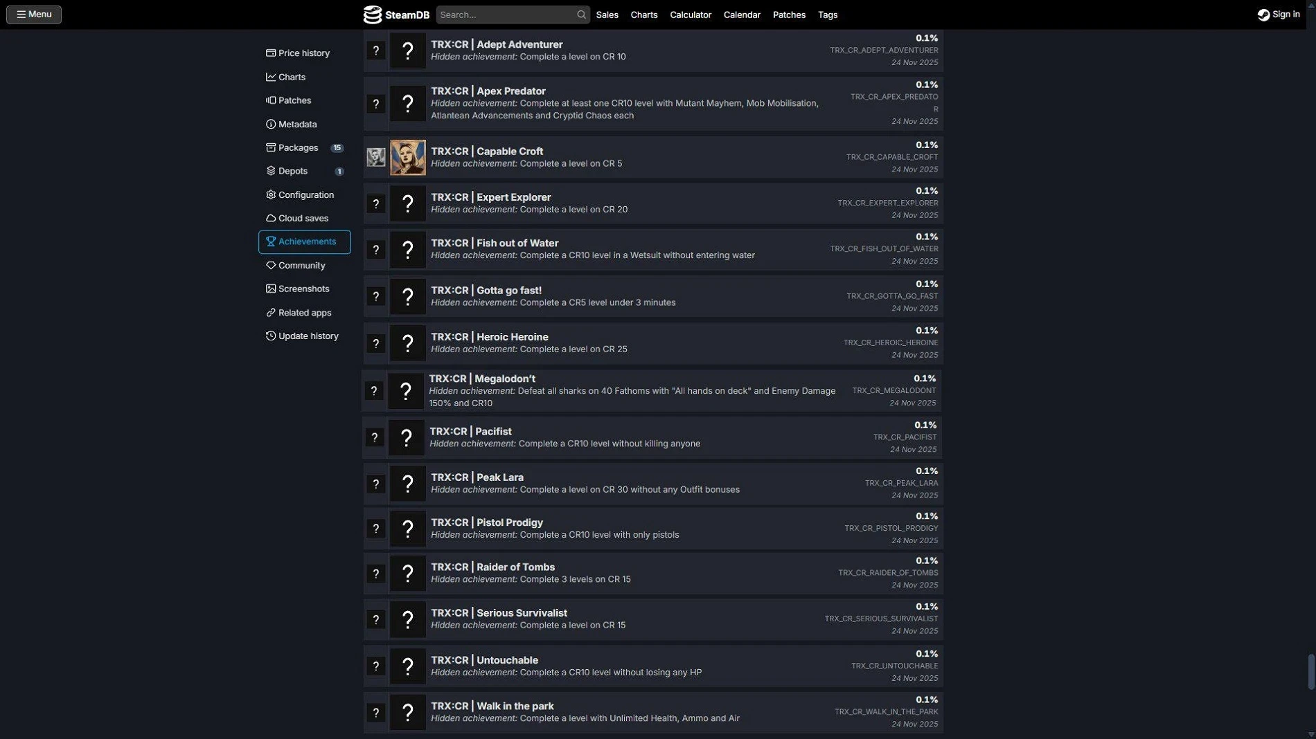 В них упоминалось прохождение определённых испытаний, например, «завершить уровень CR5 за 3 минуты», «завершить уровень CR10 без убийств», «завершить уровень на CR 30 без костюмных бонусов» и так далее.